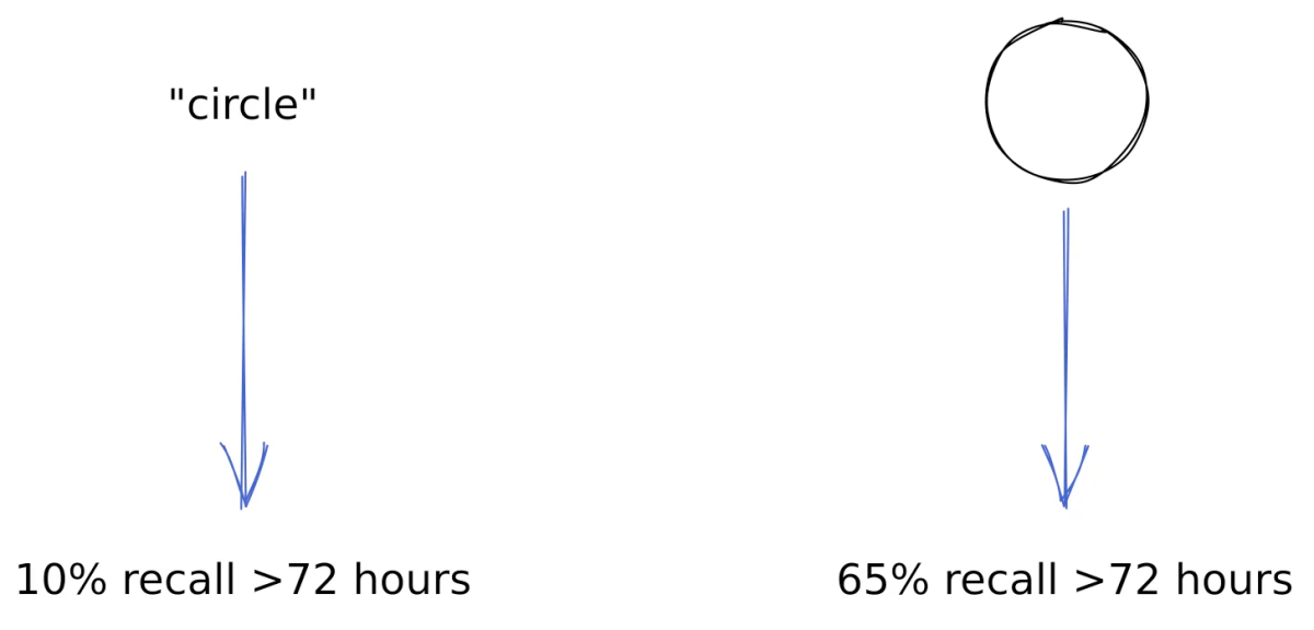 Being able to recognize shapes more easily than words bears out anecdotally too — we tend to remember faces more easily than names (which makes sense, given that our eyesight and facial recognition abilities predate our use of language).