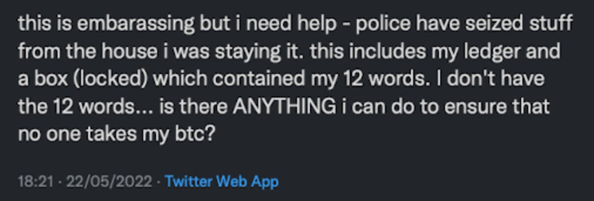 While this well-established approach is fine for those who are confident in their physical security setup, it can be a big challenge for others, e.g., people with no fixed abode; those who need to travel or who live in areas of conflict/war zones; or those living in other settings where storage of physical seed phrases may be subject to security, loss, damage or confiscation risks.