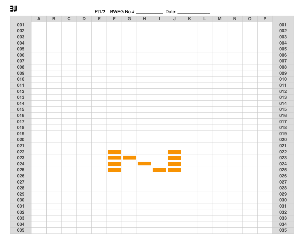 For this demo, I’m going with an 11-cell pattern in the shape of the letter “N” for Nostr, and I’m placing the top left of the N on row ‘22’ and column ‘F’ for FiatJaf.